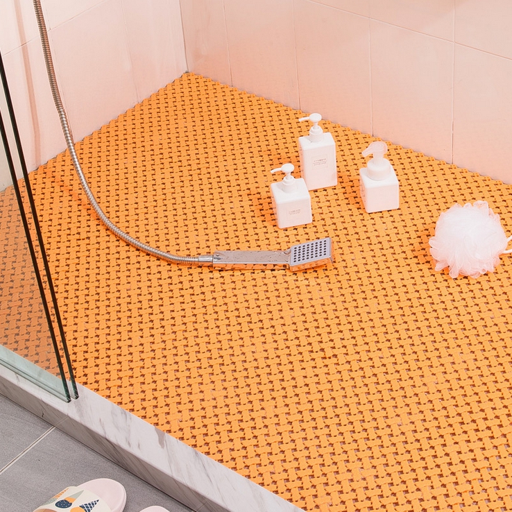 แผ่นกันลื่น แผ่นพลาสติกกันลื่น ห้องน้ำ กันลื่นห้องครัว ชุด 16 แผ่น สีส้ม